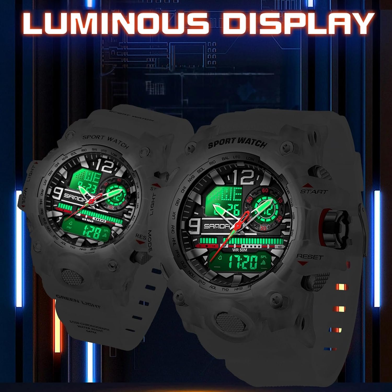 Women’s Sport Watch Digital Waterproof Watches Military Watches Analog Outdoor Wrist Watch LED Luminous Alarm Stopwatch Dual Time Wristwatch